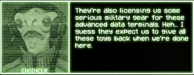 [エンジニア] この高度なデータ端末の見返りに、かなり本格的な軍用装備も貸与されている。……まあ、任務が終わったら、これらの玩具は全部返却しろってことだろうな。